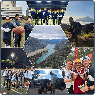 Outside of work, I like staying active and trying new things. I play and watch American football, lift weights regularly, go salsa dancing, and go scuba diving when I get the chance.